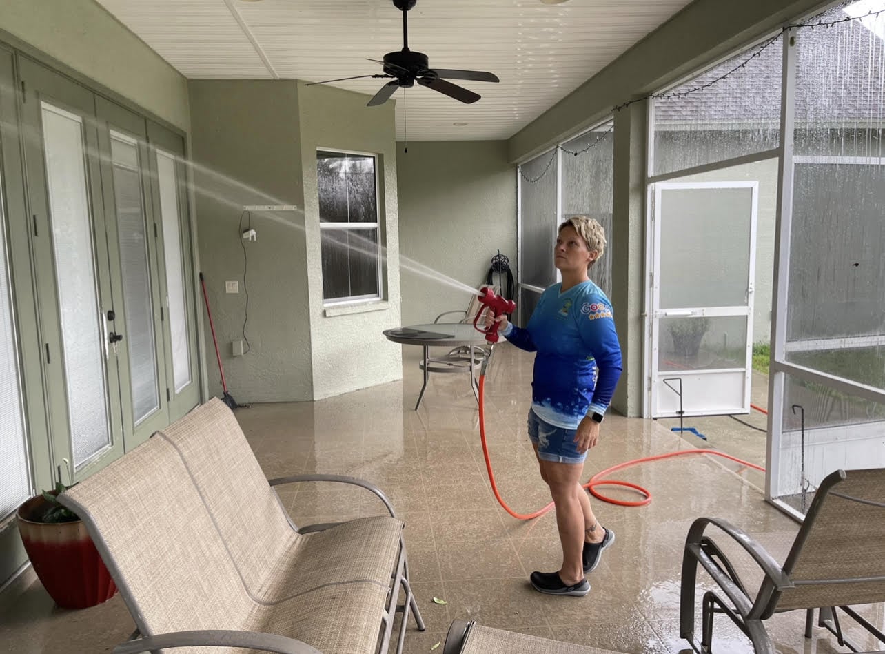 MSG Softwash Division uses a low-pressure method called soft washing to clean your pool deck and lanai. You never want to use pressure on a lanai or pool cage - this can cause damage to your screens. With soft washing, we use cleaning agents that not only remove algae and grime build-up, but also sanitize the area and keep it nice and fresh.
