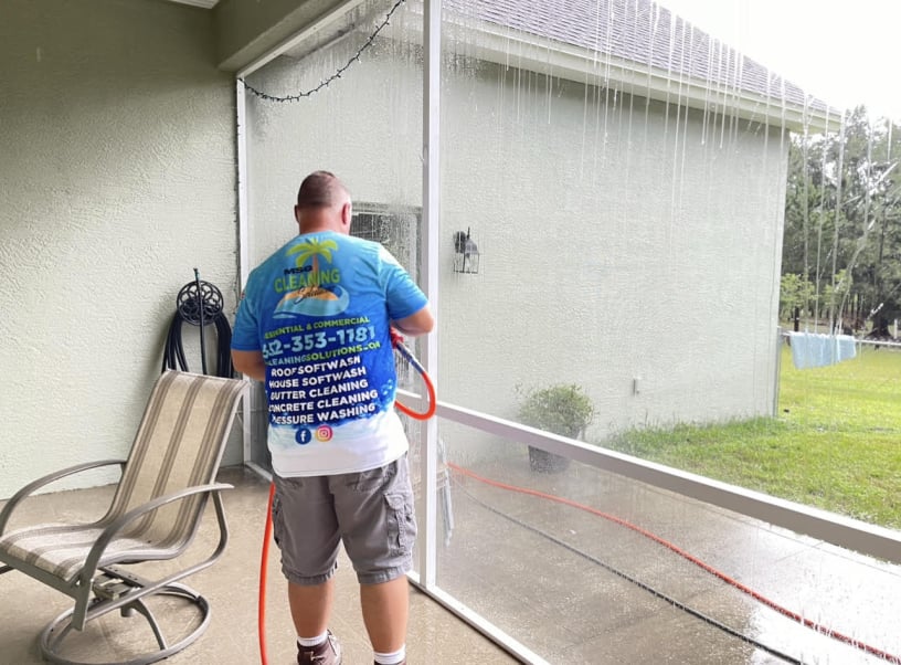 Cleaning your lanai and/or pool cage keeps it looking brand new and increases the lifespan of your investment. Central Floridian summers give rise to high humidity and lots of moisture means algae buildup. Algae, dirt, and leaf stains need to be washed away and MSG Softwash Division is the Central Florida team you need to keep your pool deck and/or lanai looking clean and brand new for your enjoyment.
