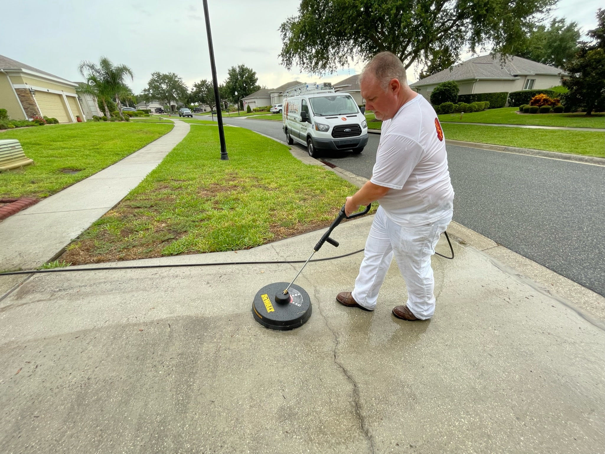Many pressure washing services charge on a varying basis, but our Central Florida pressure washing team charges by the square foot. We will measure the area to determine the size and calculate the number of square feet that the area covers. Our price will reflect this figure.